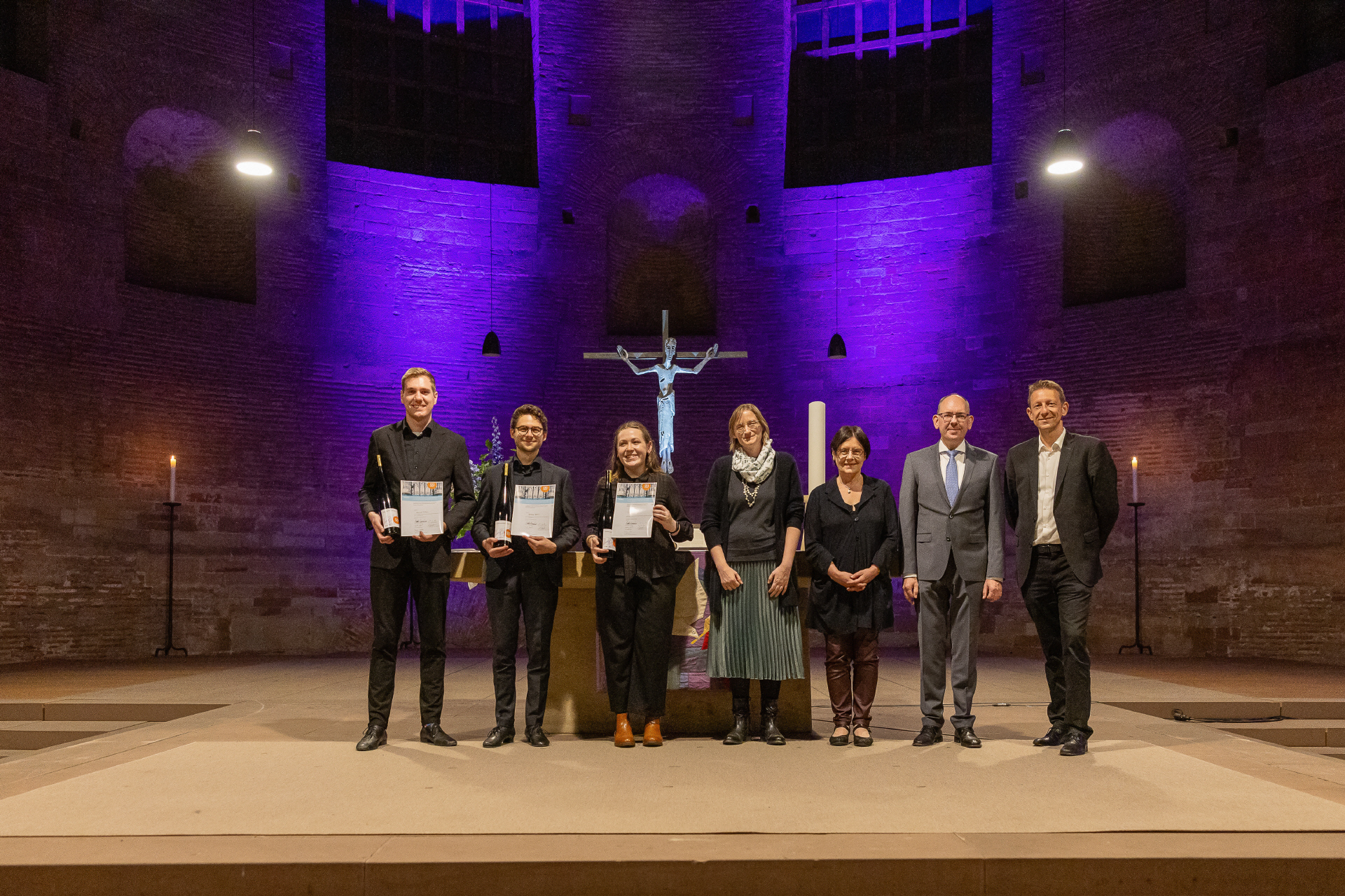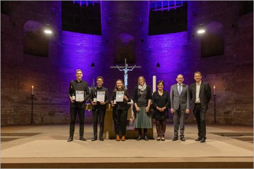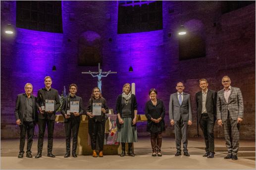 Foto: Artur Feller © HSG e.V. Preisträger und Jury (v.l.n.r.): Manuel Pschorn, Giacomo Gabusi, Luise Künzl, Prof. Mareille Krumbholz (Köln, Juryvorsitz), Pascale Rouet (Charleville/Frankreich), KMD Martin Bambauer (Trier), Domorganist Prof. Ruben Sturm (München)