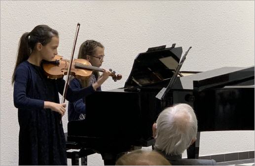 Dieser Schroeder-Flügel wurde nun in einer musikalischen Feierstunde offiziell eingeweiht, an der auch die Tochter des Komponisten Dr. Claudia Soentgen (Köln) teilnahm. Zwei begabte junge Musikerinnen aus Daun, Maia und Polina Marinova, 10 und 12 Jahre alt, begeisterten die Zuhörer mit Schroeders ausdrucksvoller Komposition „Die vier Jahreszeiten“ für Violine und Klavier, komponiert 1940 in Trier, als Schroeder dort Leiter der Städtischen Musikschule und Domorganist war.