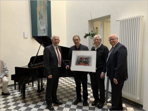 Gemälde von J.M. Dietz für die Verbandsgemeinde: Leo Wächter, Dr. Rainer Mohrs und Peter Henn (Schroeder-Gesellschaft) und Wolfgang Port (v.l.n.r.)