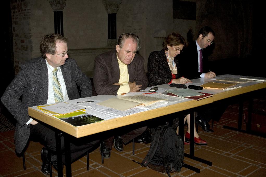 Die Wettbewerbsjury 2008 Von links nacht rechts: Domorganist Josef Still, Prof. Clemens Ganz, Prof. Anne Froidebise, Prof. Alain Wirth (© Gerhard W. Kluth)